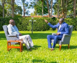 Surveyor Kigathi having a chat with the former Deputy President Rigathi Gachagua at Rigathi’s Wamunyoro Residence